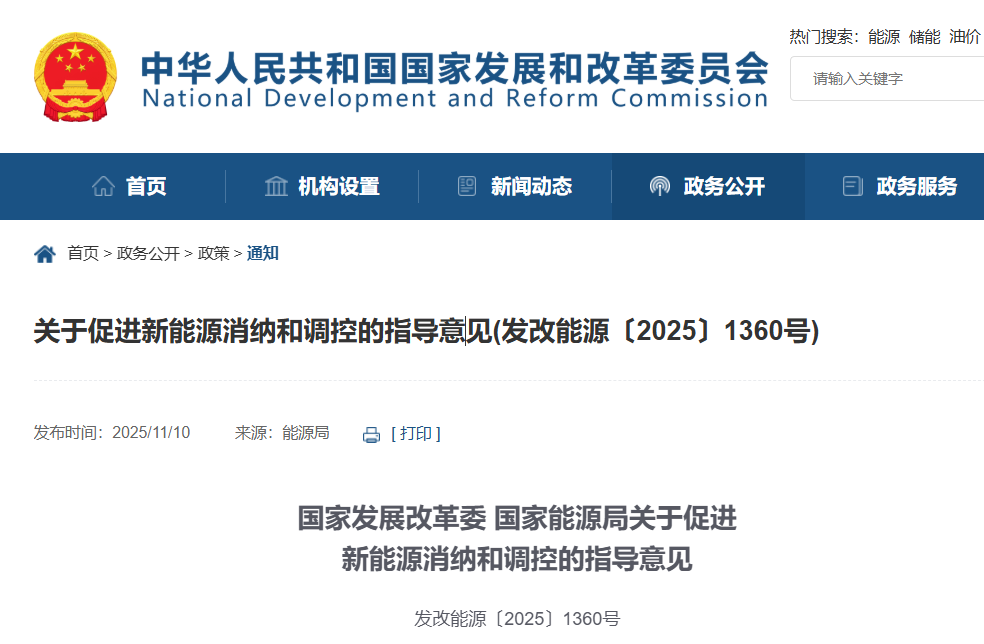 关于促进新能源消纳和调控的指导意见(发改能源〔2025〕1360号)(转自国家发改委网)